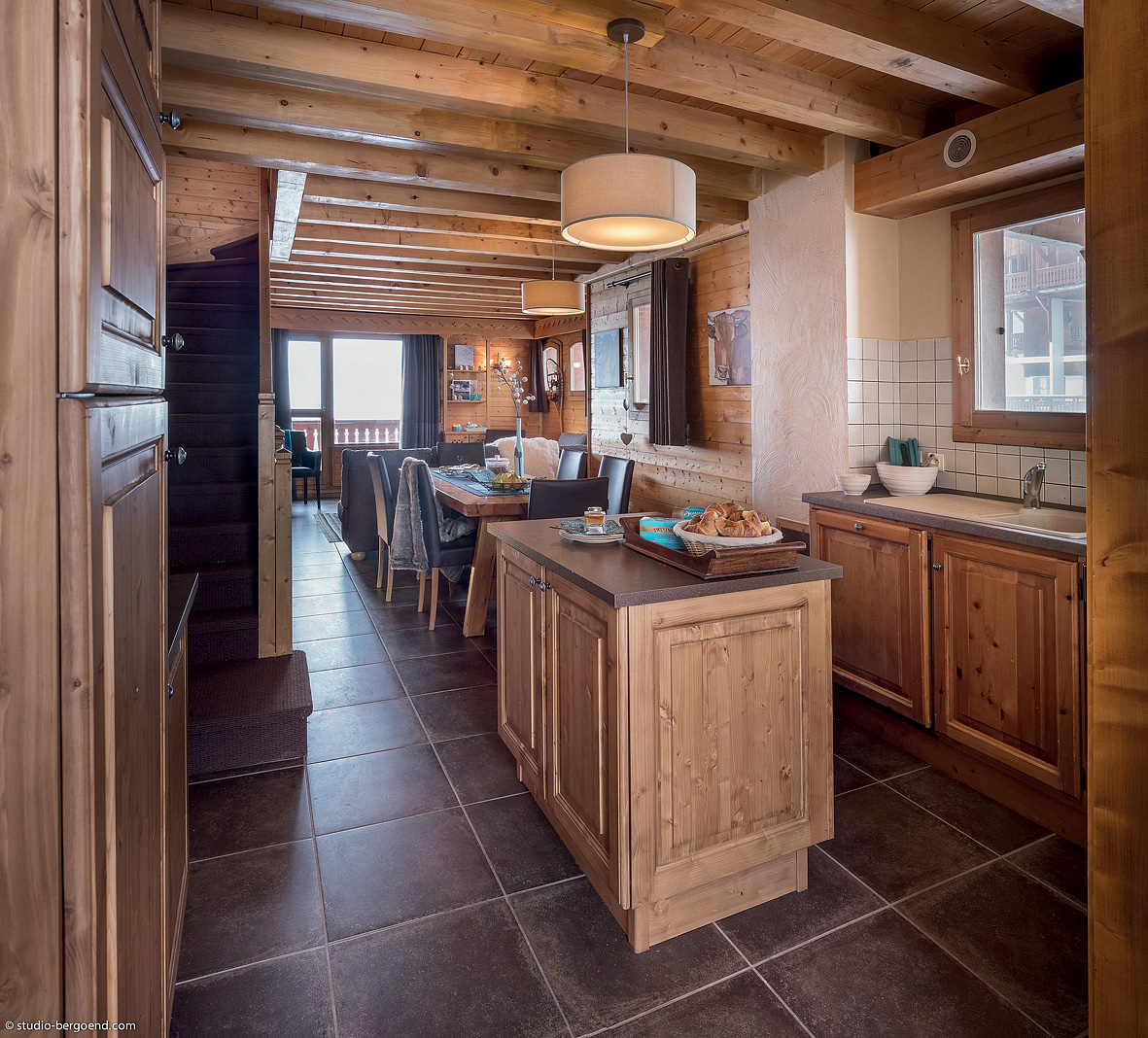 95 m² - 1. podlaží apartmánu: obývací pokoj s krbem, samostatná kuchyňka, sociální zařízení (jen WC), balkon; 2. podlaží apartmánu: 1 ložnice s manželskou postelí, 1 ložnice se 2 samostatnými lůžky, 2x sociální zařízení se sprchou či vanou (1x bez WC); 3. podlaží apartmánu: 1 ložnice se 4 samostatnými lůžky