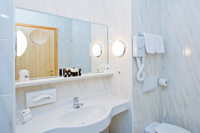 TV sat., telefon, fén, zpravidla trezor, wi-fi připojení k internetu, nápojová lednička (na vyžádání), župany do wellness (na vyžádání)