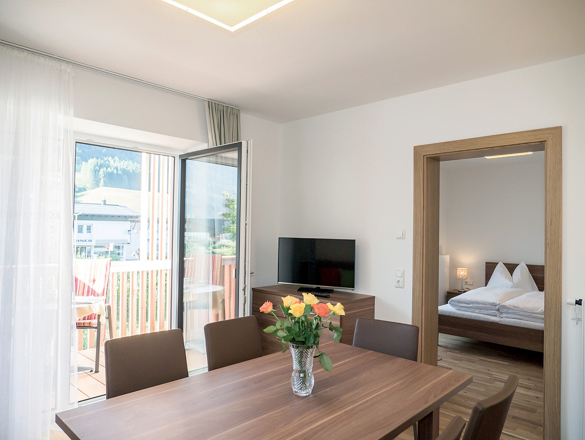 velmi pěkné a komfortně vybavené apartmány s balkonem s výhledem na okolní horské masivy