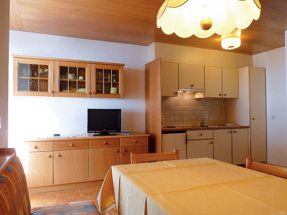 35 m² - obývací pokoj s kuchyňským koutem, manželskou postelí a rozkládacím křeslem na lůžko pro 1 osobu, předsíň, sociální zařízení s vanou, balkon