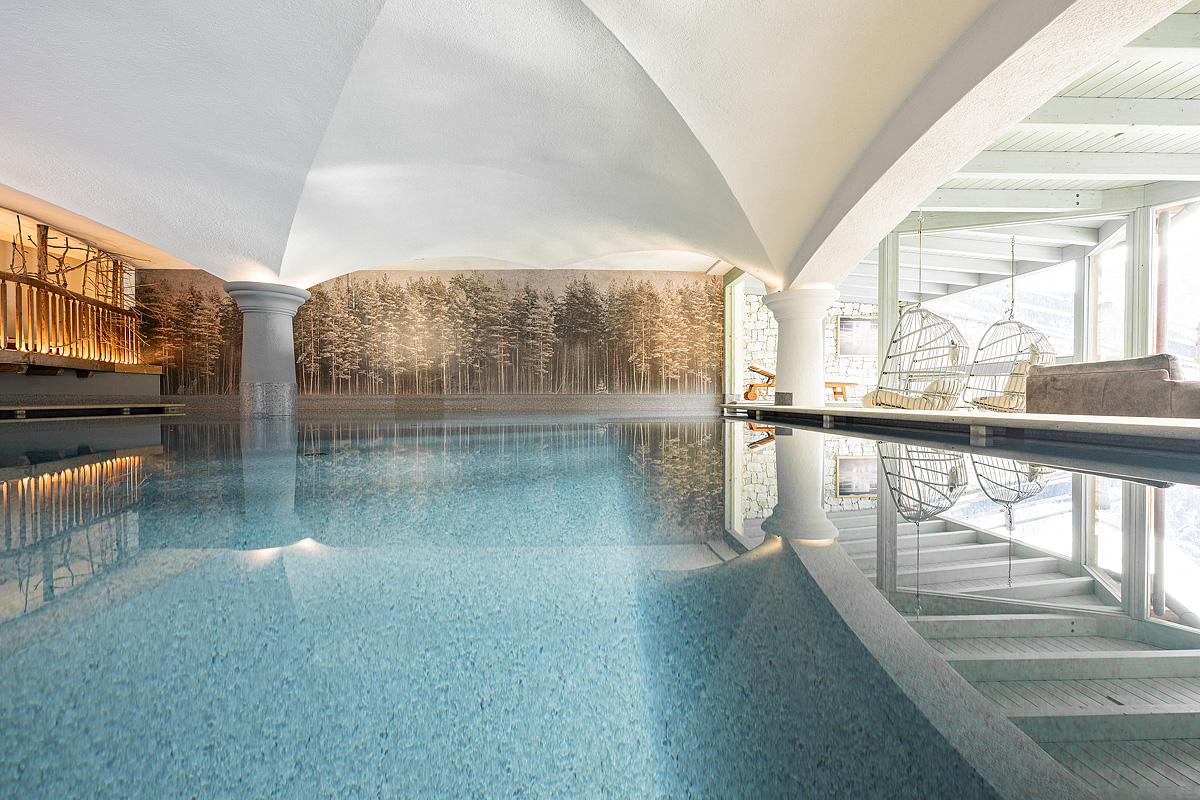 bazén 16 x 9 m s vířivkou, venkovní vyhřívaný bazén 9 x 4,5 m, dětský bazének s umělým vodopádem, 2x venkovní vířivka až pro 10 osob, finská sauna#, venkovní finská sauna#, 2x aromatická sauna#, pára#, infrakabina#, relaxační koutek s lehátky, Kneippův chodník#, masáže*, kosmetické služby*, posilovna, biliár*, stolní tenis, stolní fotbal*; služby označené # mohou využívat děti do 14 let jen do 16.00 hod.
