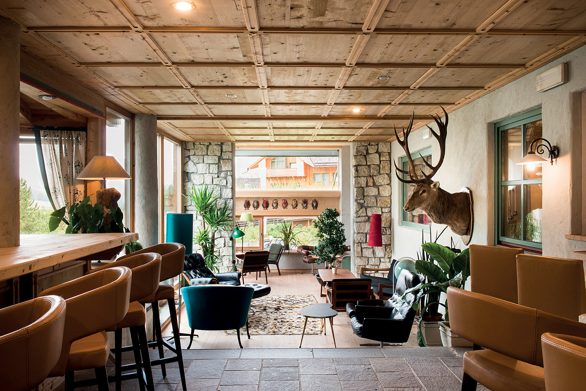 recepce / lobby s krbem, restaurace vyhrazená pro hotelové hosty, bar / panoramatická společenská místnost, vinotéka, místnost vyhrazená pro kuřáky, společenská místnost, typická společenská místnost, typická společenská místnost s kamny, knihovna, sluneční terasa s posezením, velká dětská herna, wi-fi připojení k internetu, Playstation, Nintendo Wii, úschovna lyží a lyžařských bot, 3x výtah, garážová stání (1 auto / pokoj) / 2x nabíjecí stanice* (pomalé do 22 kW)
