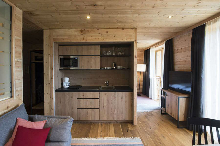 • rodinná typologie Zirbenappartment Sole se zařízeným kuchyňským koutem