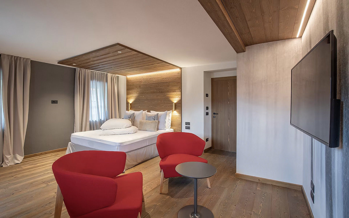 Superior 2/2+2 - 33 m² - pokoj s manželskou postelí a rozkládacím gaučem pro 2 děti do nedovršených 16 let, sociální zařízení, balkon; maximální obsazenost pokoje jsou 2 dospělé osoby a 2 děti od 3 do nedovršených16 let