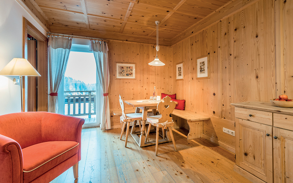 hotel je tvořen hlavní budovou, vedlejší budovou Verena a samostatnou budovou pro wellness centrum; níže uvedené služby se nachází převážně v budově hlavní, relaxační zóna se nachází v samostatné budově, s výjimkou bazénu a vířivky, které se nachází v budově Verena; všechny níže uvedené pokoje se nachází v hlavní budově, s výjimkou pokoje Standard Verena 2/3 a Suite Monte Croce Verena 2/3/4, který se nachází ve vedlejší budově Verena; pokoj Junior Suite se nachází v budově hlavní i ve vedlejší budově Verena