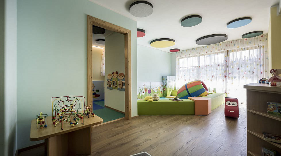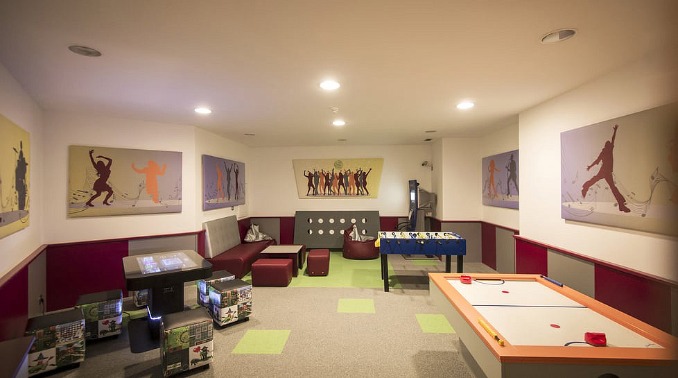 recepce, lobby, vyhrazená restaurace, jídelna pro snídaně, bar, snack bar, společenská místnost, výtah, sluneční terasa s posezením, velká zahrada, dětský koutek, 3x dětská herna, babyklub (do 3 let, bez animace), animační programy (od 3 let, 90 hodin / týdně), playstation, videohry, nabíjecí stanice* (pomalé do 22 kW), služby hotelové prádelny*, půjčovna lyžařského vybavení*, úschovna lyží a lyžařských bot* (v půjčovně lyžařského vybaveni), wi-fi připojení k internetu, garážová stání
