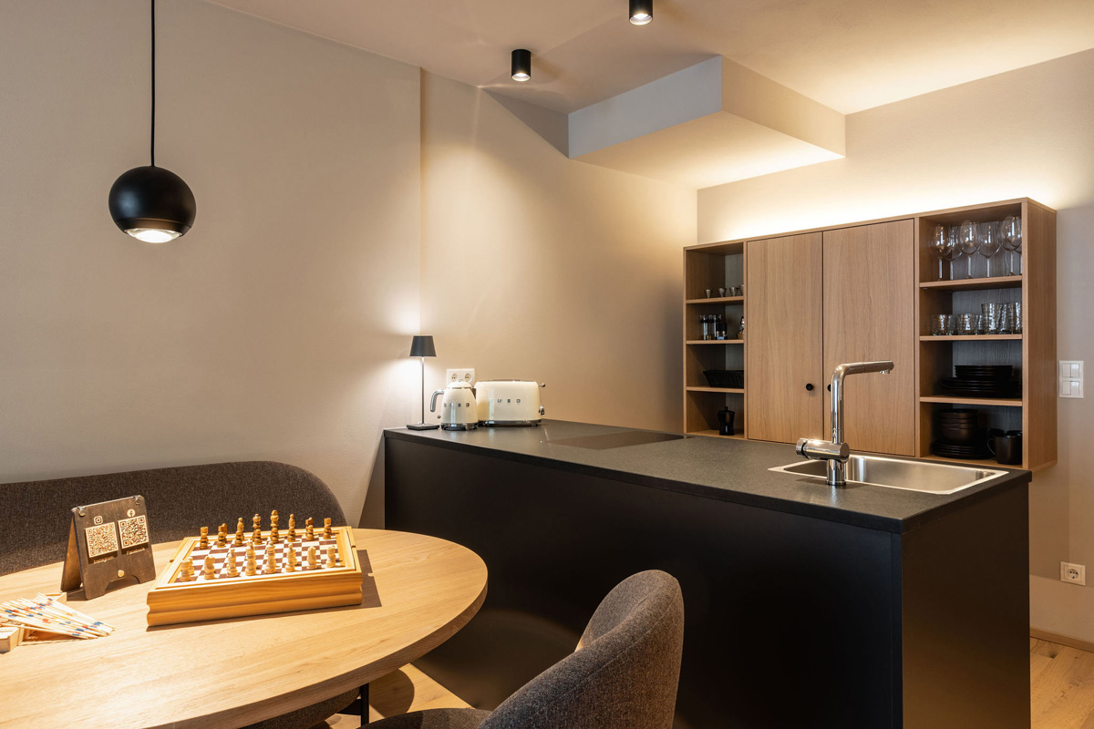 bilo 3 Home - 40 m² – 1 ložnice s manželskou postelí, obývací pokoj s kuchyňským koutem a gaučem pro 1 osobu, sociální zařízení, balkon