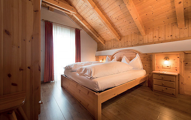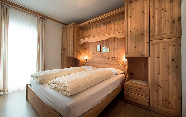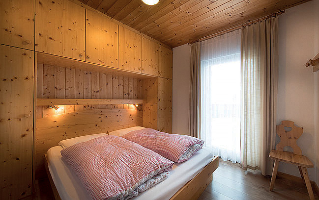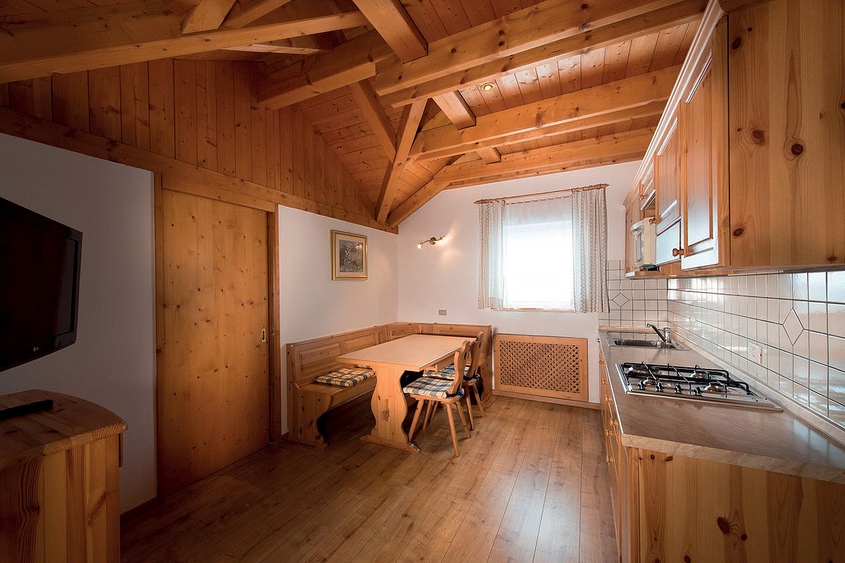 48 m² - 1 ložnice s manželskou postelí, obývací pokoj s kuchyňským koutem a rozkládacím gaučem pro 2 osoby, sociální zařízení, balkon; maximální obsazenost apartmánu jsou 2 dospělé osoby a 2 děti do nedovršených 14 let; 1 apartmán je situován v podkroví