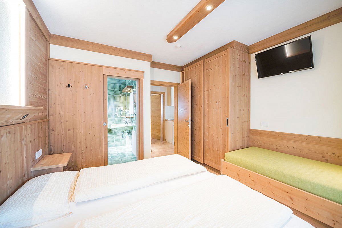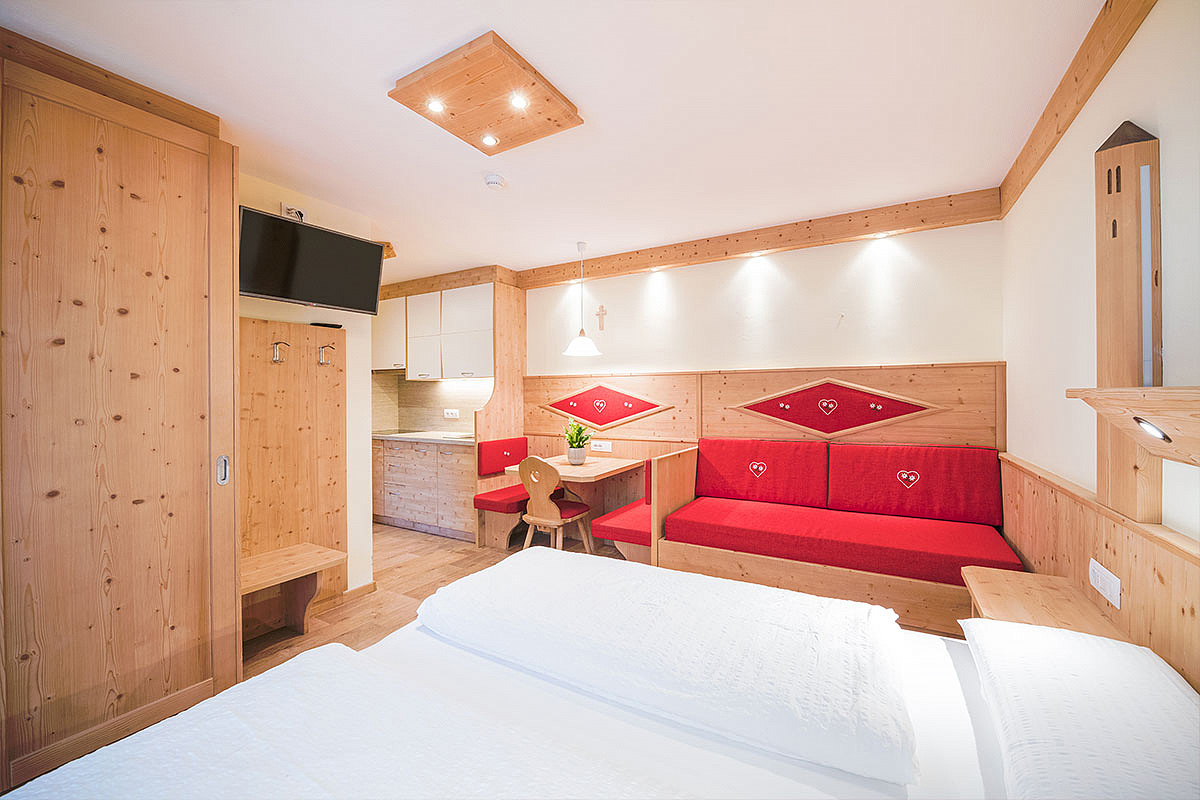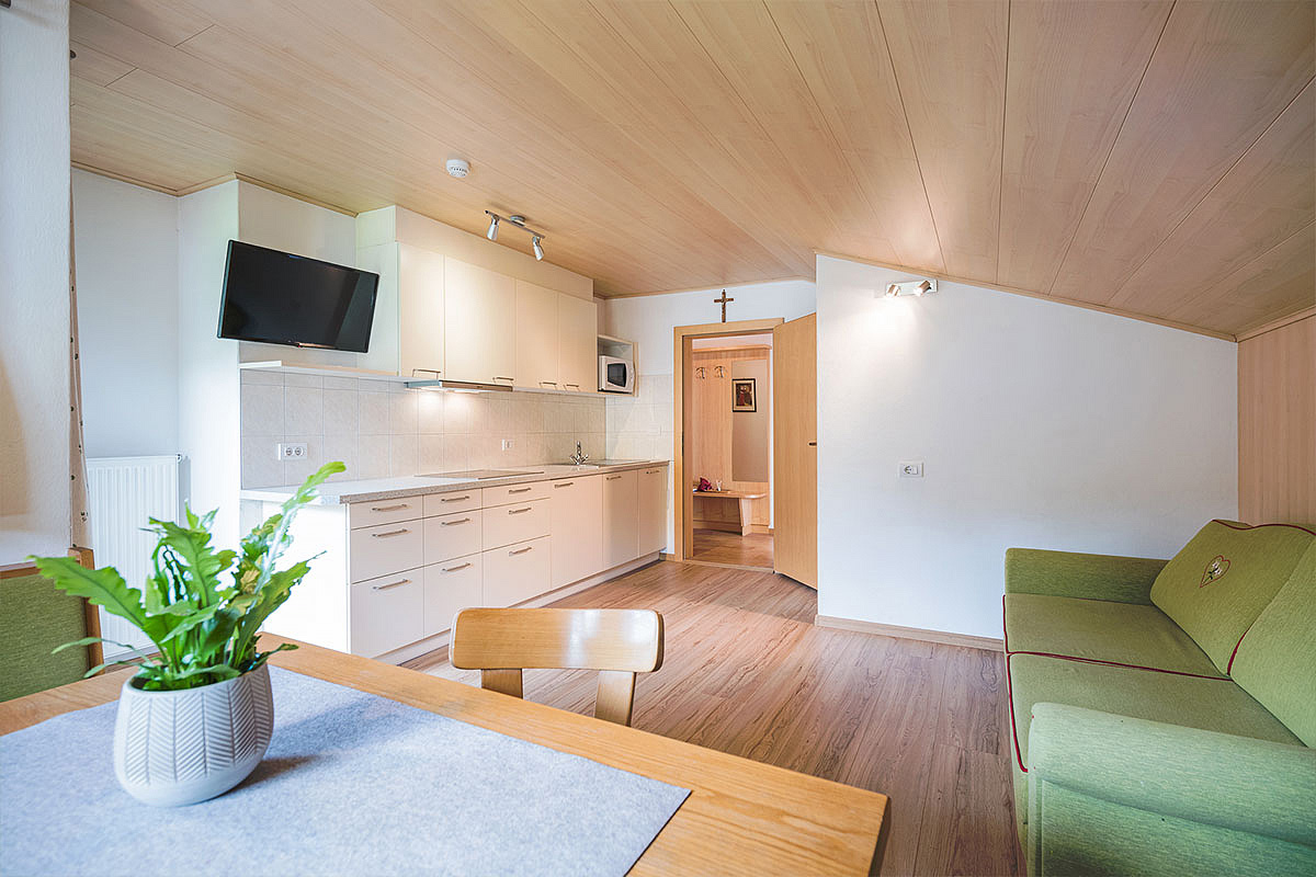26 m² - obývací pokoj s kuchyňským koutem, manželskou postelí a 1 samostatným lůžkem (170 cm), sociální zařízení, balkon; maximální obsazenost apartmánu jsou 2 dospělé osoby a 1 dítě do nedovršených 14 let
