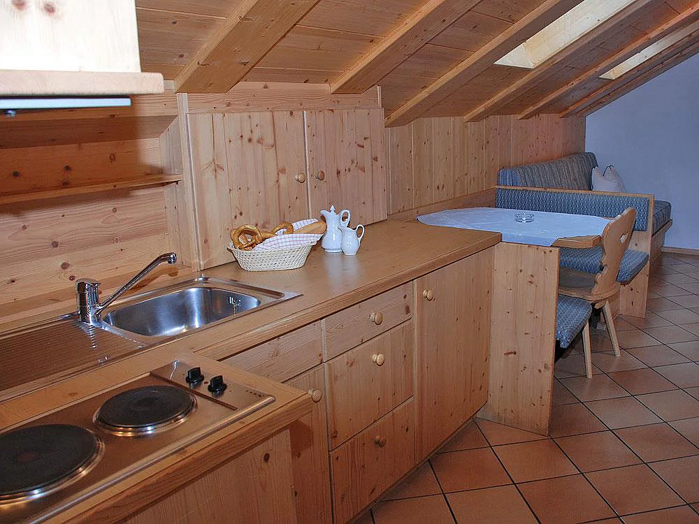 29 m² – obývací pokoj s kuchyňským koutem a manželskou postelí, sociální zařízení se sprchou; apartmán se nachází v podkroví