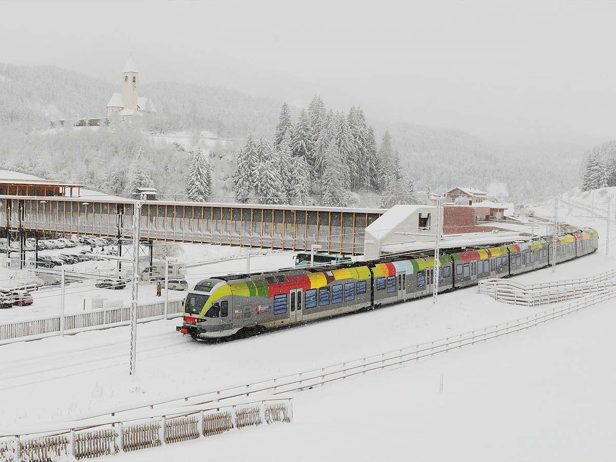 výborná dostupnost lyžování díky zastávce skivlaku Ski Pustertaler Express jen pár kroků od residence aneb do 15 minut na sjezdovce