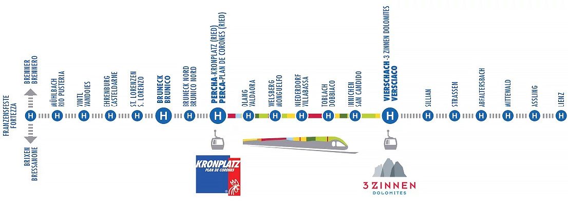 • s rozšířeným skipasem možnost lyžování také v sousedním lyžařském středisku Kronplatz dostupném tímtéž skivlakem