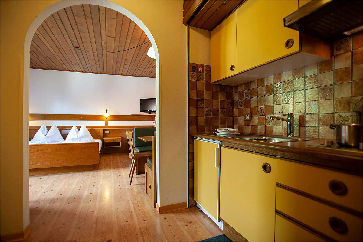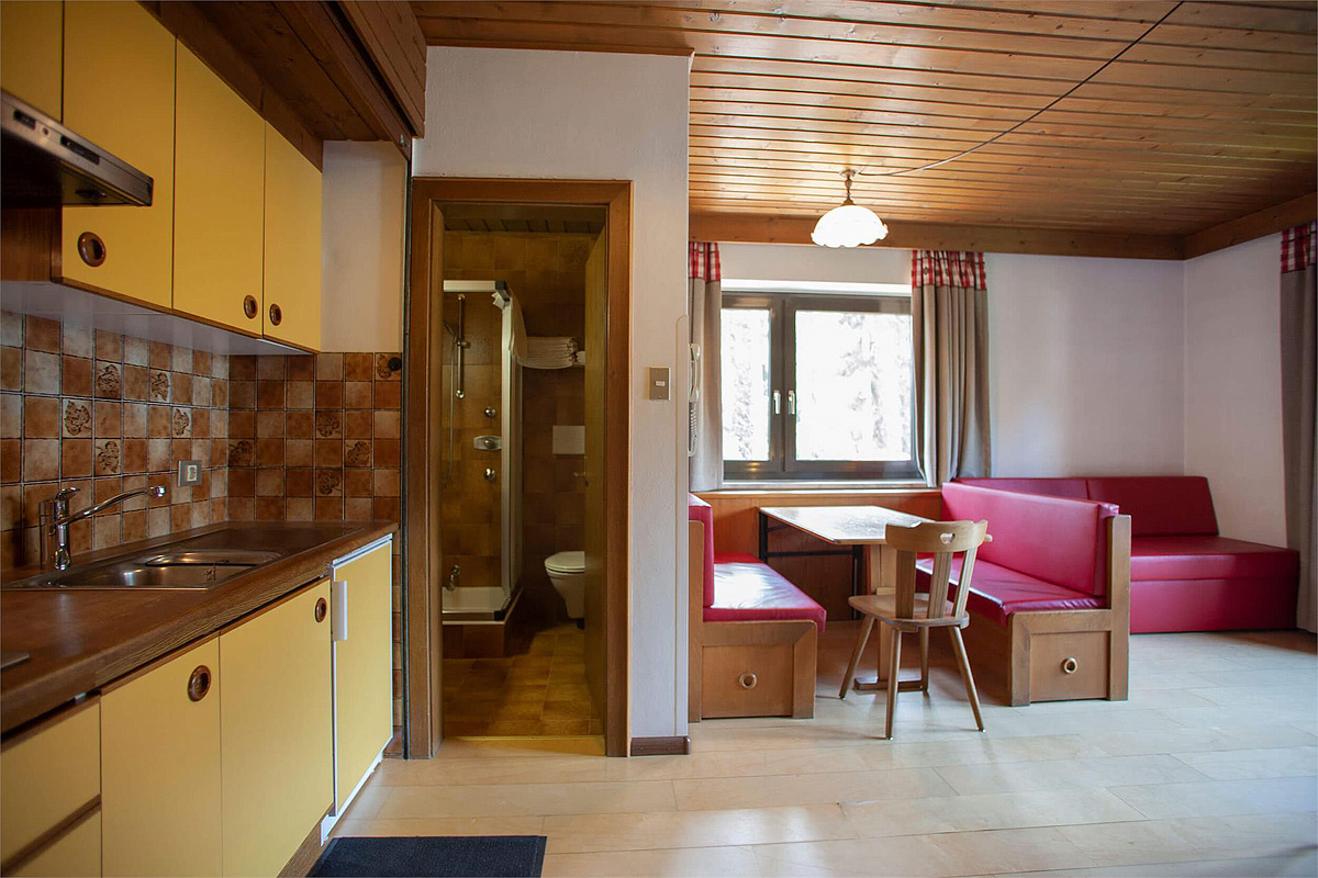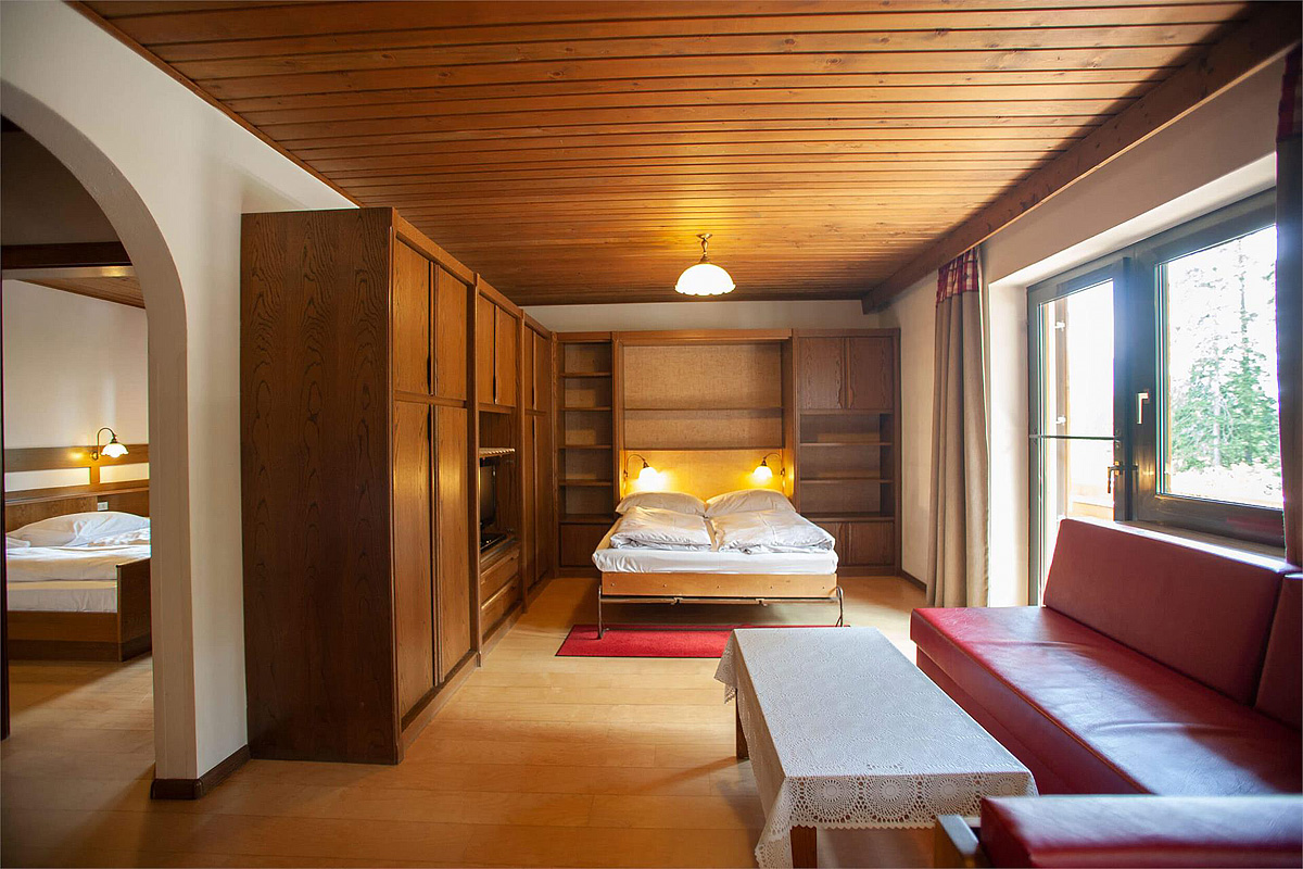 45 m² - 1 ložnice s manželskou postelí, obývací pokoj s kuchyňským koutem, skříňovou manželskou postelí a 1 dalším samostatným lůžkem či rozkládacím gaučem pro 1 osobu, sociální zařízení, balkon či terasa