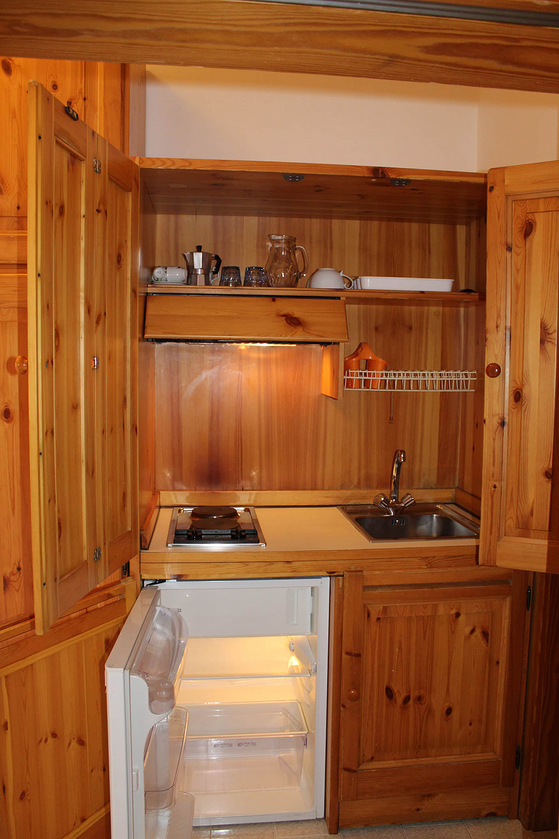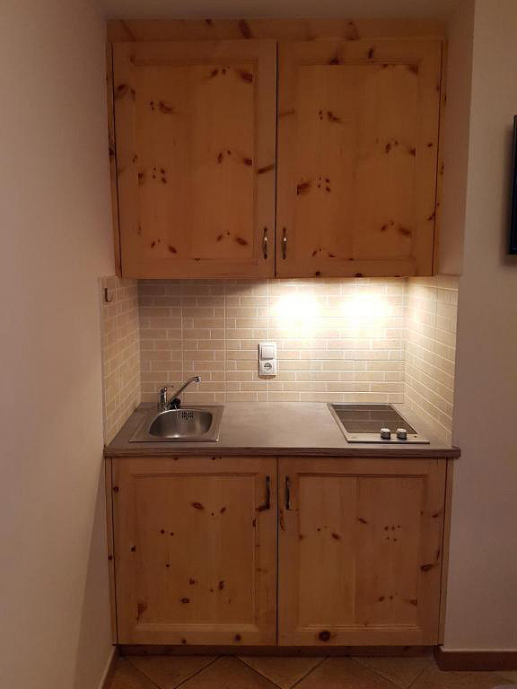 30 m² – obývací pokoj s malým kuchyňským koutem a rozkládacím gaučem pro 2 osoby, sociální zařízení