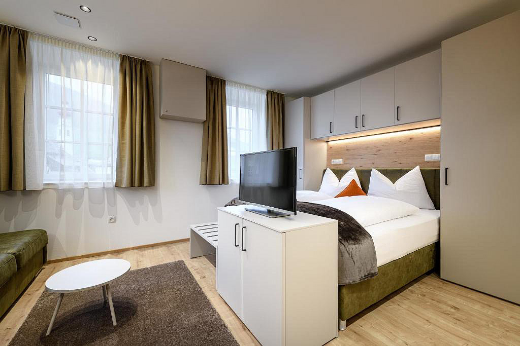 mono 4 Sophie - 31 m² – obývací pokoj s kuchyňským koutem, manželskou postelí a rozkládacím gaučem pro 2 osoby, sociální zařízení