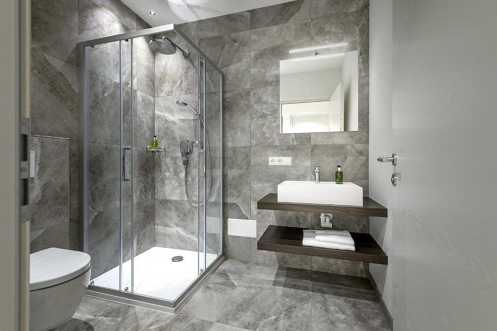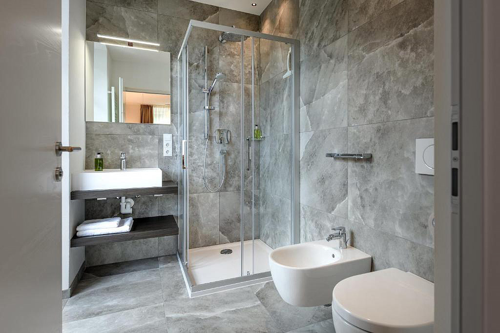 bilo 4 Greta - 43 m² – 1 ložnice s manželskou postelí, obývací pokoj s kuchyňským koutem a rozkládacím gaučem pro 2 osoby, sociální zařízení, 2x balkon