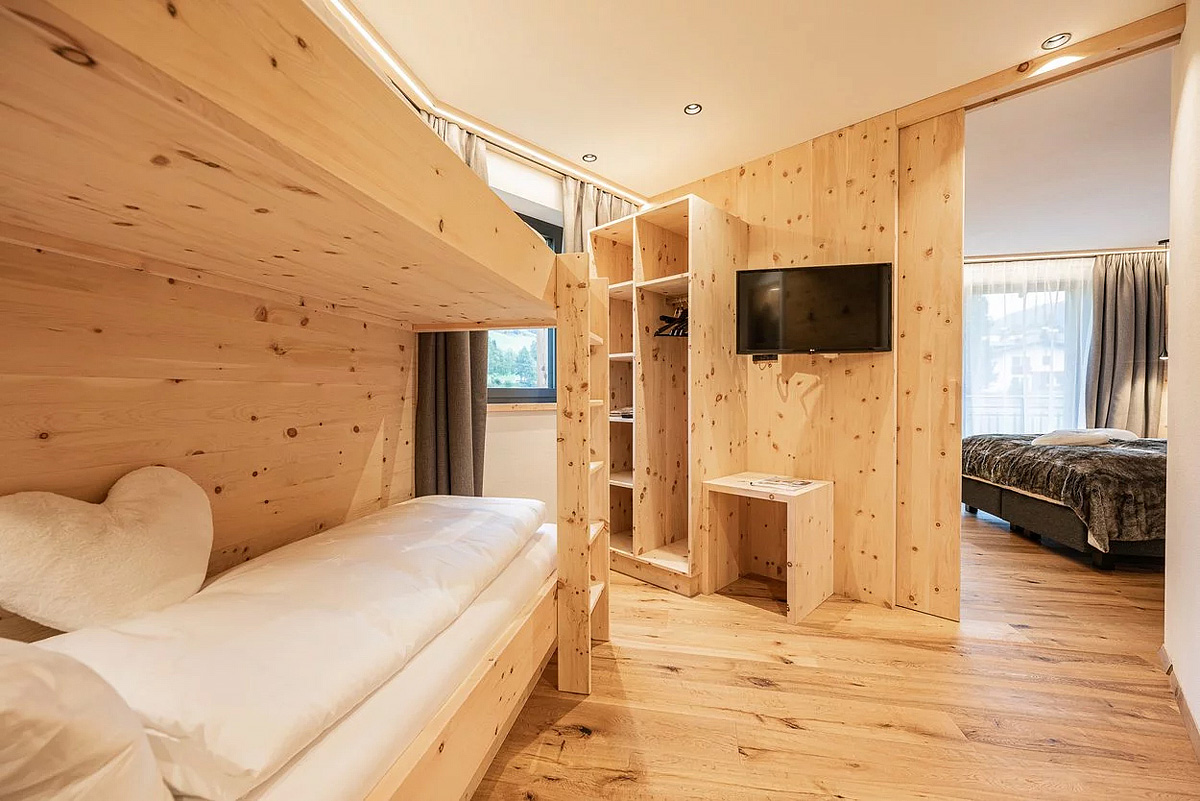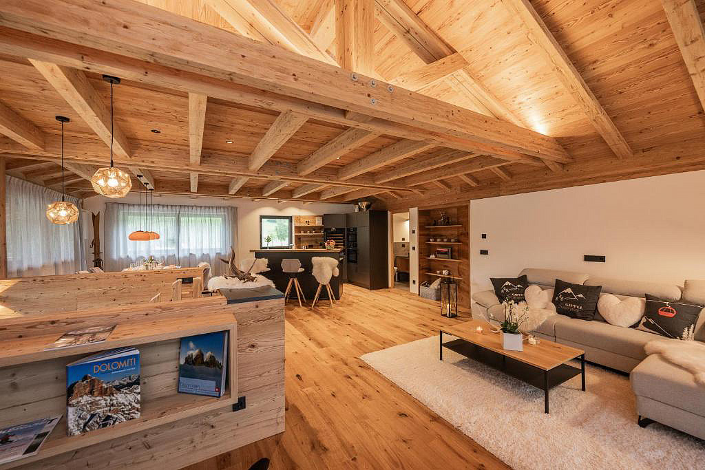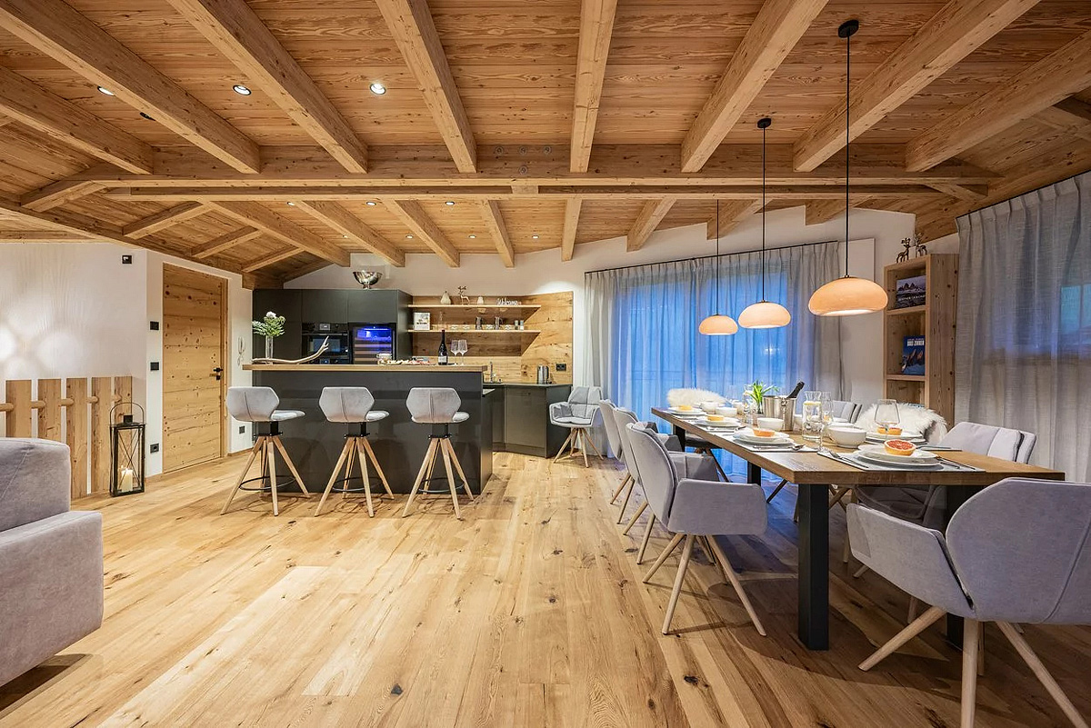 wi-fi připojení k internetu, úschovna lyží a lyžařských bot formou vyhřívaných skříněk, garážová stání (2 parkovací místa / chalet) / nabíjecí stanice* (pomalé do 22 kW), uvítací přípitek – 1x láhev Prosecca, 1x láhev Francia Corta, 1x láhev Pinot Bianco a degustační košík se špekem, šunkou a sýry místní provenience