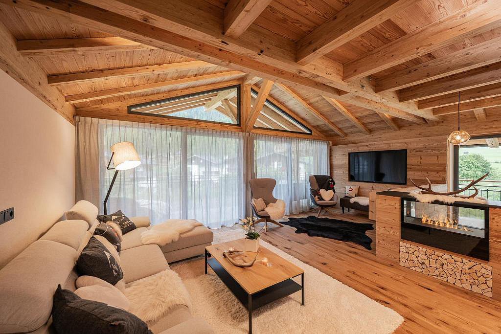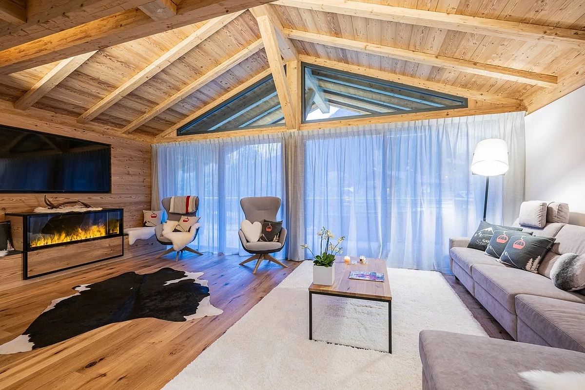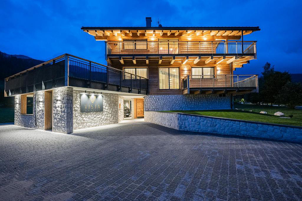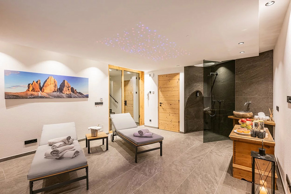 novostavba 2 třípodlažních chaletů v blízkosti kabinové lanovky na Monte Elmo; privátní sauna, vířivka a relaxační koutek s lehátky je součástí každého chaletu