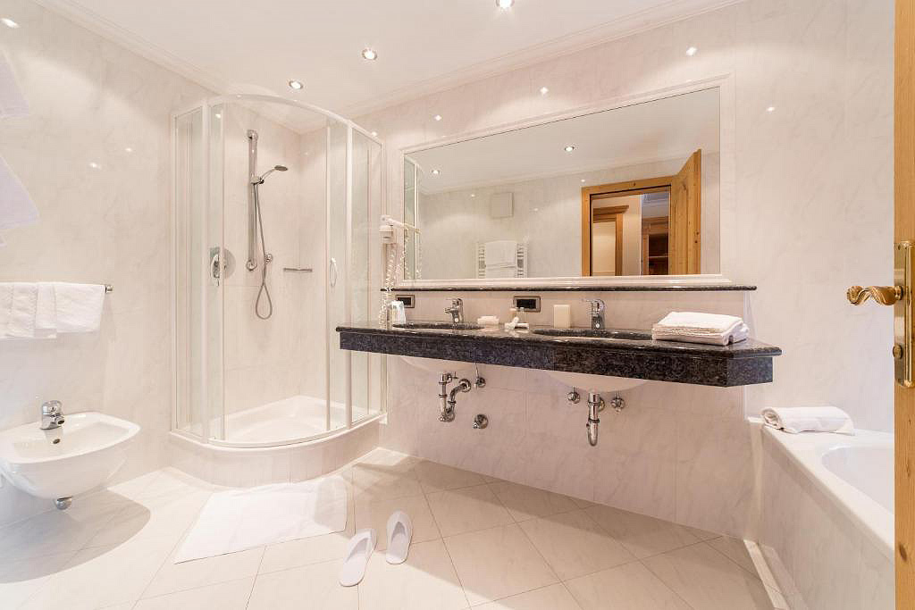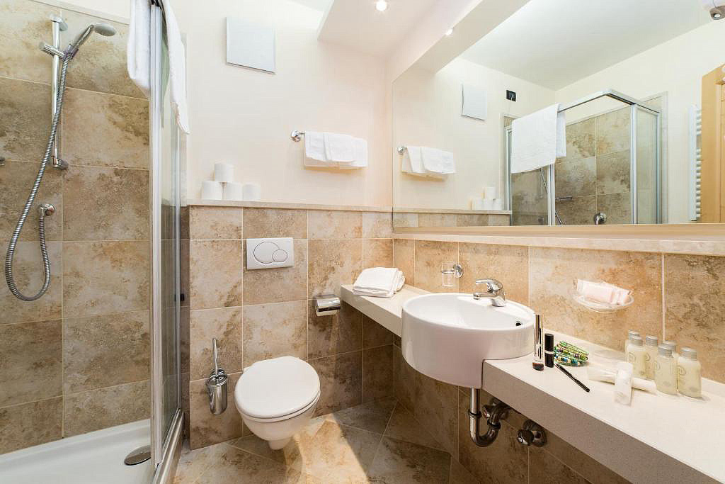 Family Superior 4 - 28 až 38 m² - pokoj s manželskou postelí či 2 samostatnými lůžky, pokoj s rozkládacím gaučem pro 2 osoby, 2x sociální zařízení se sprchou či vanou, balkon; pokoj lze obsadit jen 4 osobami