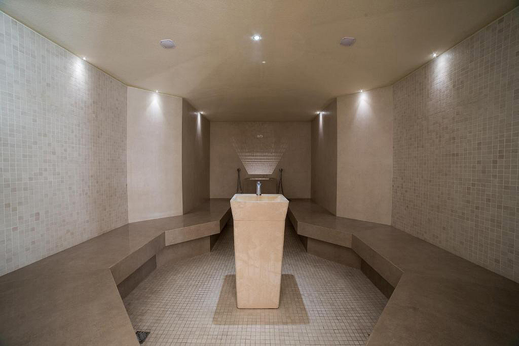 bazén 75 m², venkovní minibazén 6 x 4 m s vířivkou až pro 8 osob, sauna#, pára#, multifunkční sprcha#, relaxační koutek se zavěšenými proutěnými houpacími křesly, masáže*, kosmetické služby*, malá posilovna; služby označené # mohou využívat jen osoby od 16 let; v rámci relaxačního centra jsou zdarma nabízeny též ručníky a osušky