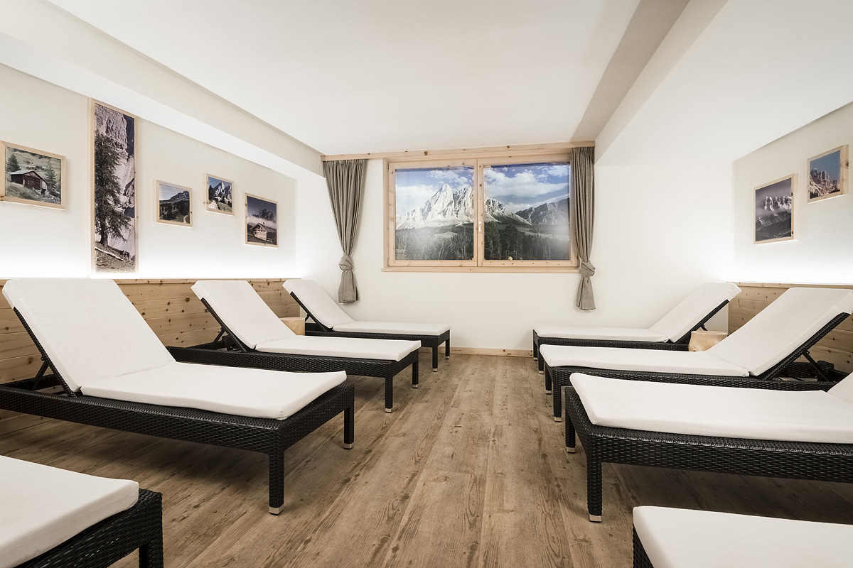 sauna*, pára*, infrakabina*, 2x relaxační koutek* s lehátky