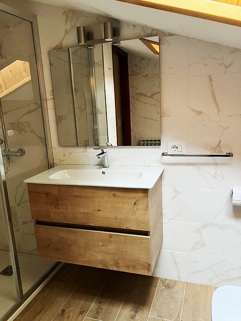 bilo 4 - 1 ložnice s manželskou postelí, obývací pokoj s rozkládacím gaučem pro 2 osoby, oddělený kuchyňský kout, zrekonstruované sociální zařízení se sprchou, balkon; apartmán je situován v podkroví