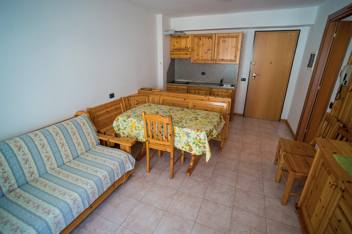 70 m² - 1 ložnice s manželskou postelí, 1 ložnice se 2 samostatnými lůžky, obývací pokoj s rozkládacím gaučem pro 2 osoby, malá samostatná kuchyňka, sociální zařízení, zpravidla balkon