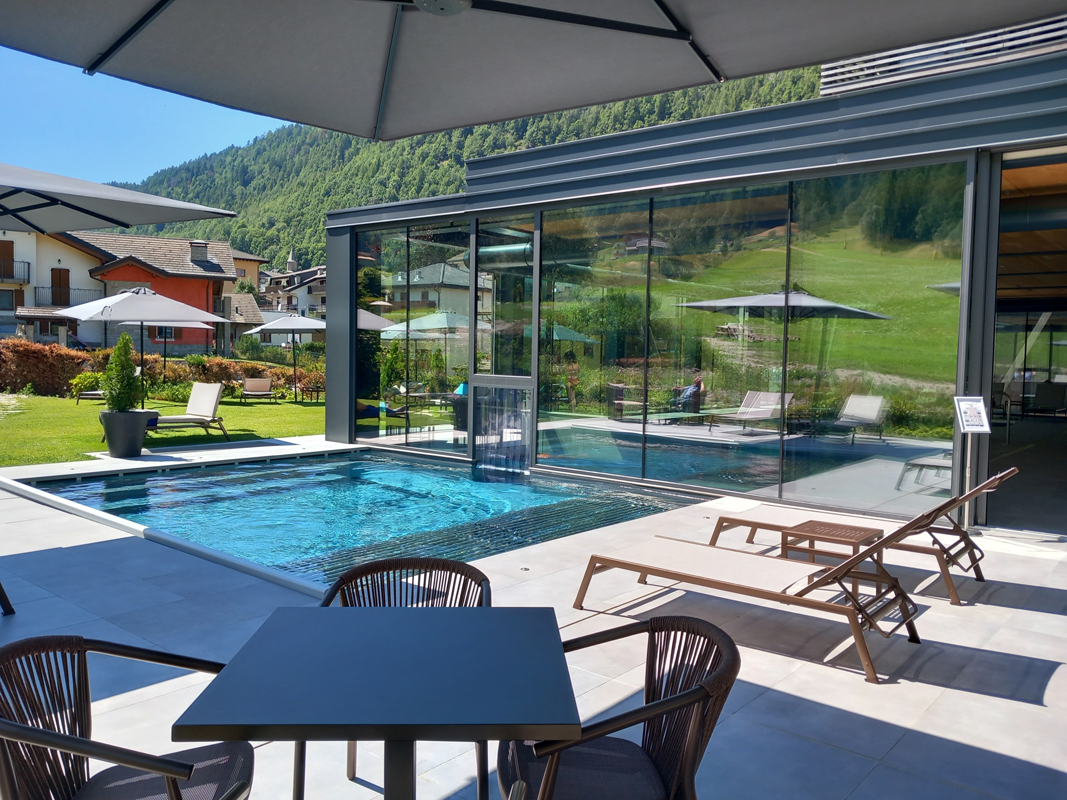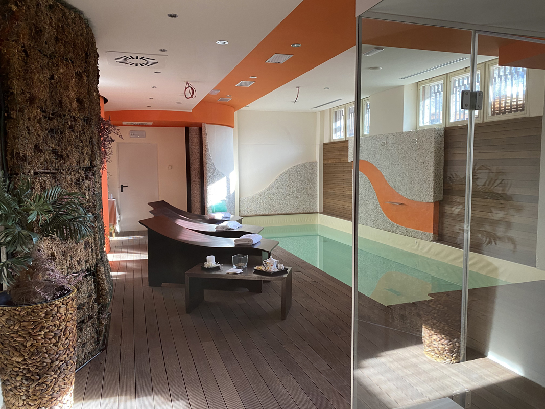 nový vnitřní bazén propojený s venkovní částí bazénu, relaxační centrum# zahrnující mini bazén# 7 x 2 m s vířivkou a lehátky, finská sauna#, aromatická pára#, multifunkční sprcha#, masáže*, kosmetické služby*; služby označené # nemohou využívat děti do 16 let; služby označené # mají v ceně pobytu pokoje Deluxe zdarma u pobytů min. na 7 nocí; u pokojů Classic je vstup vždy za poplatek; v rámci relaxačního centra jsou zdarma nabízeny též bylinkové čaje