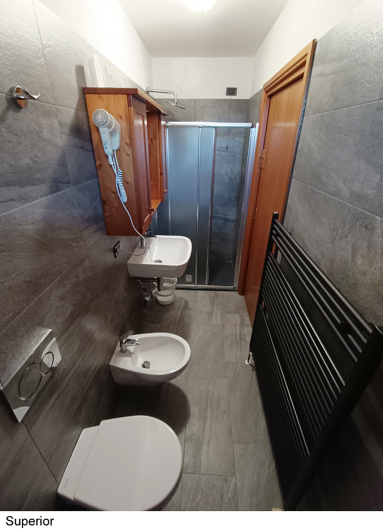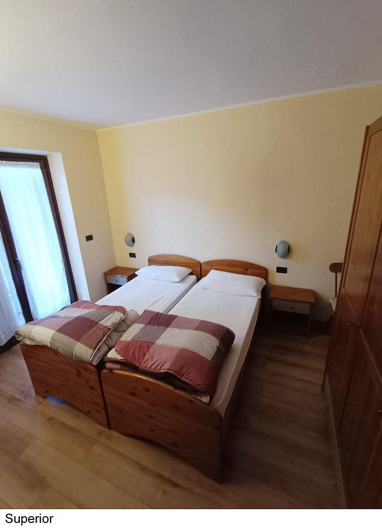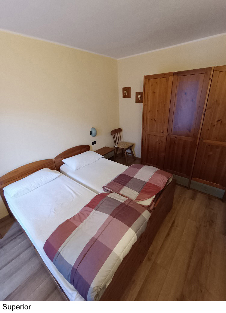 typ A - 50 m² - 1. podlaží apartmánu: 1 ložnice se 2 samostatnými lůžky, obývací pokoj s kuchyňským koutem a rozkládacím gaučem pro 2 osoby, zrekonstruované sociální zařízení, balkon; 2. podlaží apartmánu: 1 ložnice s manželskou postelí a skříňovým rozkládacím lůžkem pro 1 osobu, zrekonstruované sociální zařízení (jen umyvadlo a WC), balkon;