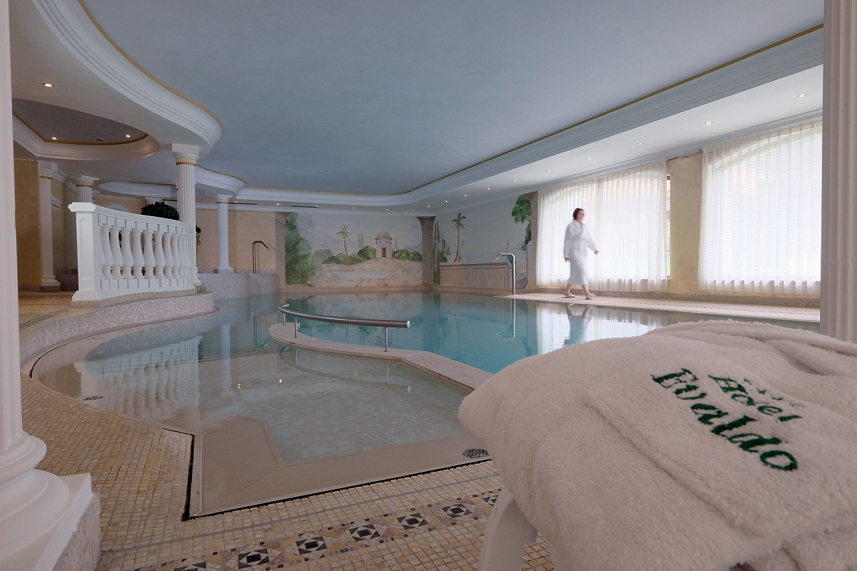 bazén 11 x 5 m s protiproudem a umělým vodopádem, vířivka až pro 6 osob, finská sauna#, aromatická sauna#, pára#, infrakabina, hydromasážní sprcha#, aromatická sprcha#, 2x relaxační koutek# s lehátky, Kneippův chodník#, masáže*, kosmetické služby*, posilovna; služby označené # mohou využívat jen osoby od 18 let