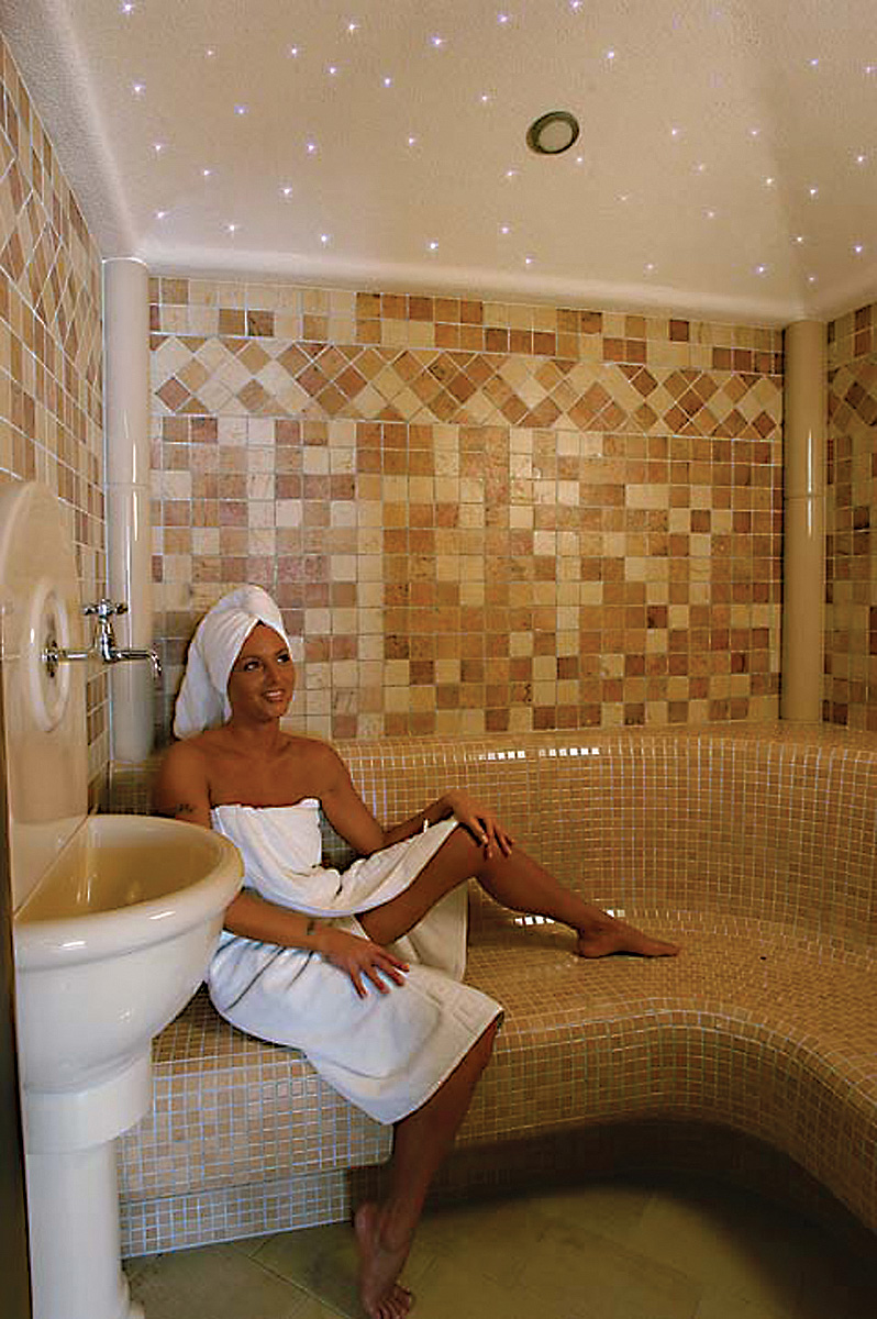 vířivka# až pro 5 osob, sauna#, pára#, 2x multifunkční sprcha#, relaxační koutek# s lehátky; služby označené # mohou využívat jen osoby od 14 let