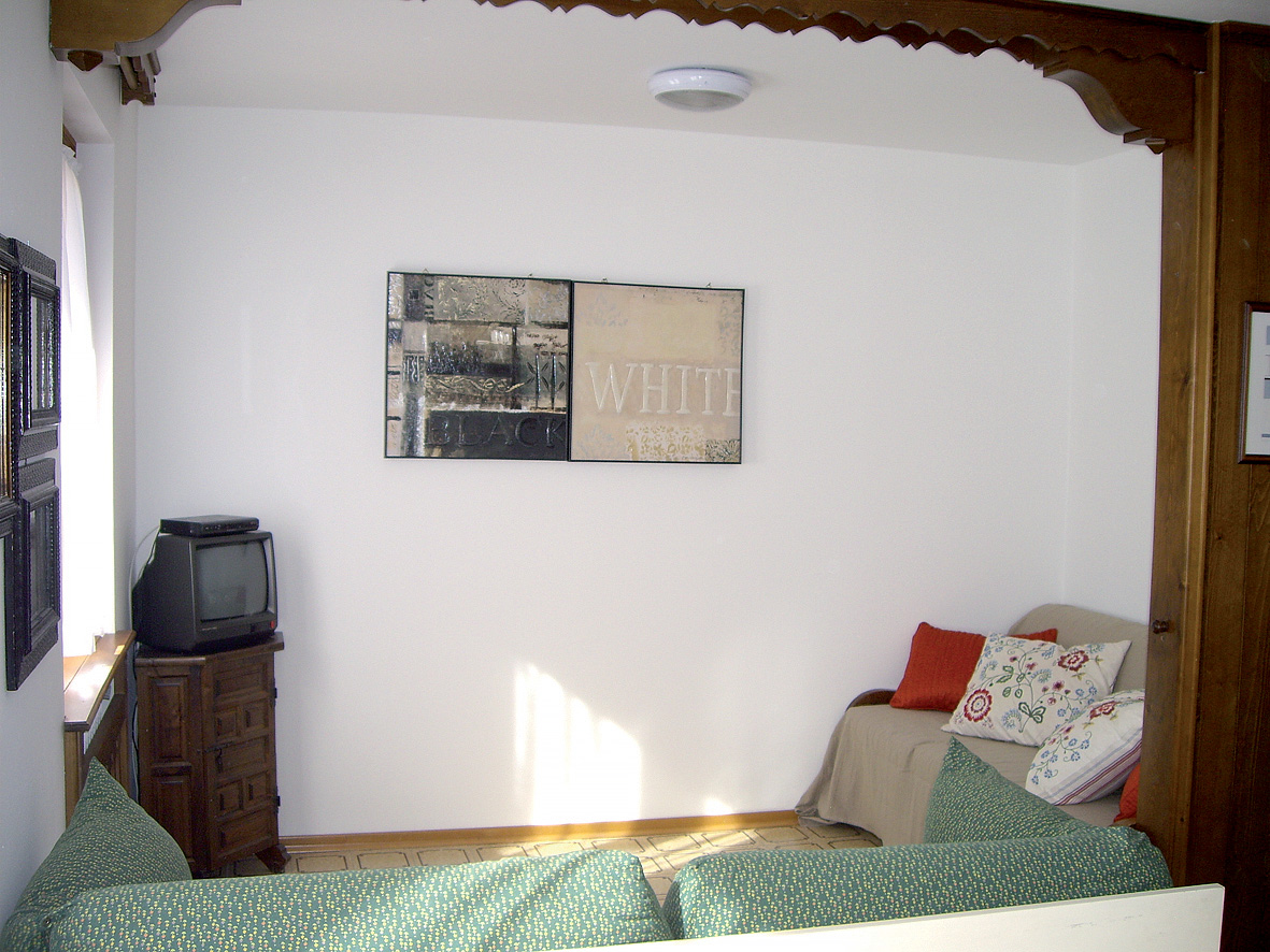 1 ložnice s manželskou postelí, 1 ložnice se 2 palandami, obývací pokoj s kuchyňským koutem a případně rozkládacím gaučem pro 1 osobu, sociální zařízení; apartmán je situovaný v podkroví