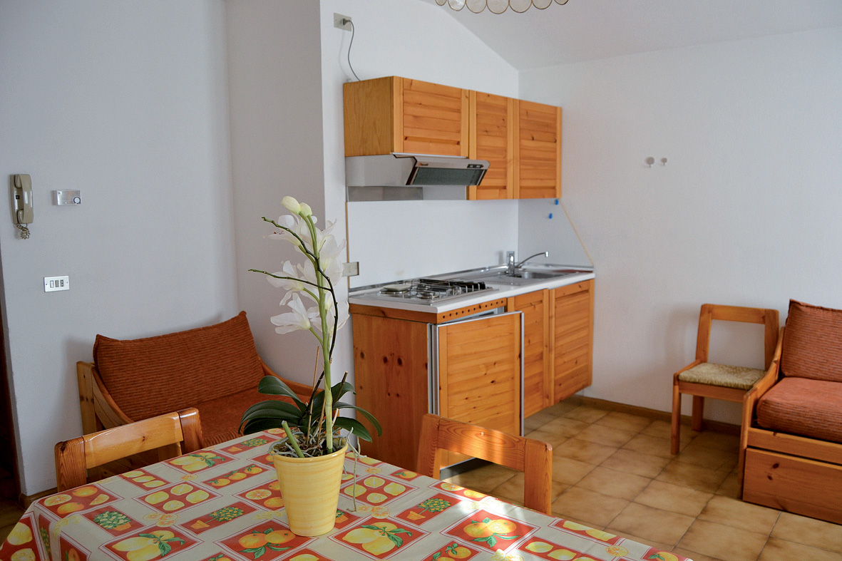 34 m² - 1 ložnice s manželskou postelí, obývací pokoj s kuchyňským koutem a rozkládacím gaučem pro 2 osoby, sociální zařízení, balkon či terasa