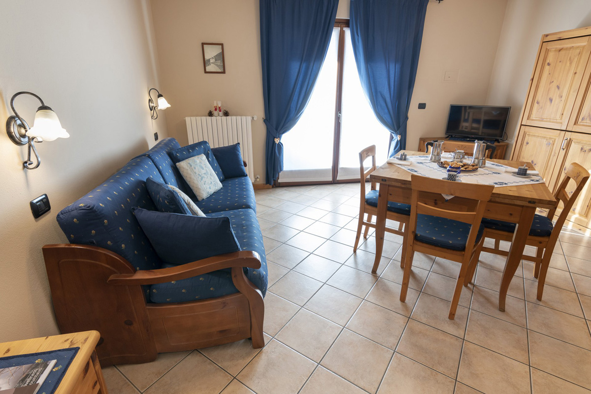 60 m² - 1 ložnice s manželskou postelí, 1 ložnice se 2 samostatnými lůžky a 1 vyvýšeným lůžkem, obývací pokoj s kuchyňským koutem a rozkládacím gaučem pro 2 osoby, sociální zařízení se sprchou, balkon; k dispozici 2 apartmány jeden v přízemí a jeden v 1. patře