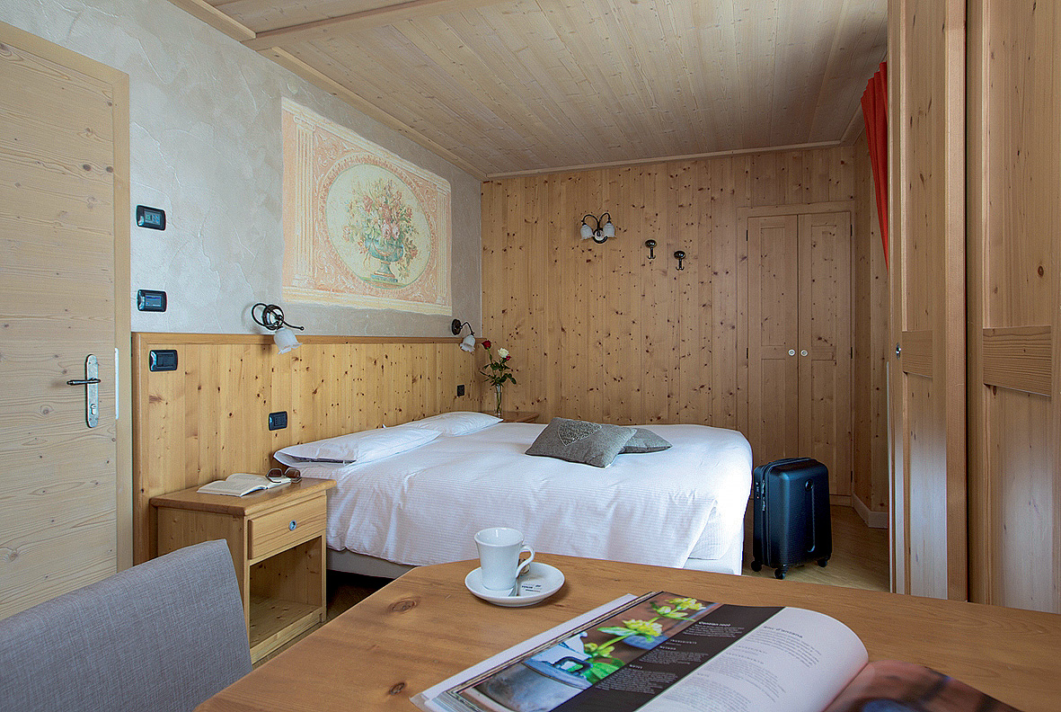 pokoj s 1 či 2 samostatnými lůžky či manželskou postelí a případně 1 dalším samostatným či skříňovým samostatným lůžkem či palandou (možno i mimoúrovňovou), sociální zařízení zpravidla se sprchou, zpravidla balkon
