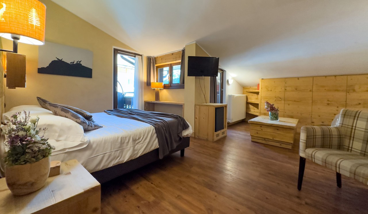Panorama 2/3 - 35 m² - zrekonstruovaný prostornější pokoj s manželskou postelí či 2 samostatnými lůžky a případně 1 samostatným lůžkem, sociální zařízení zpravidla se sprchou, zpravidla balkon