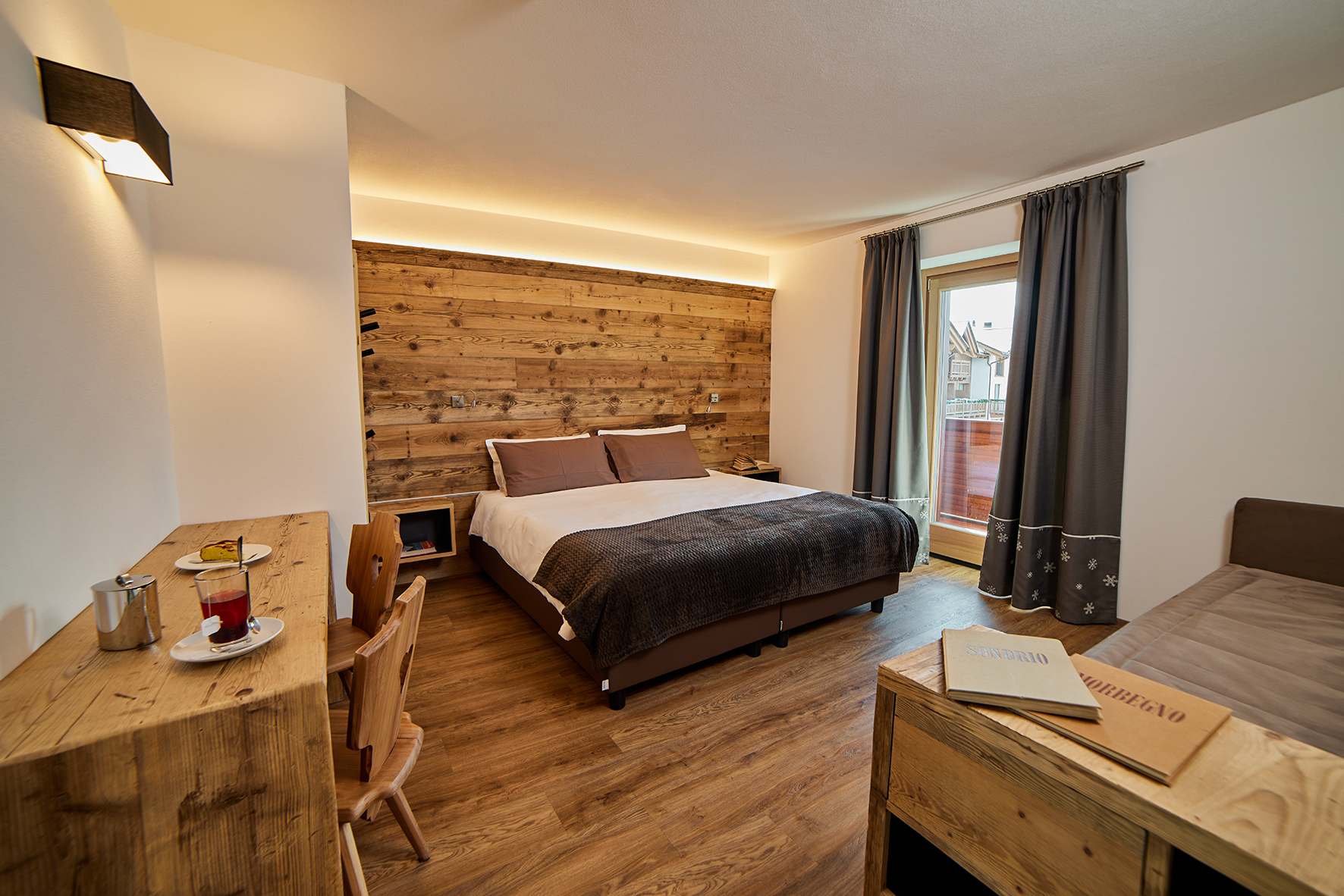 pokoj s manželskou postelí či 2 samostatnými lůžky a případně 1 či 2 dalšími samostatnými lůžky či mimoúrovňovou palandou, sociální zařízení, zpravidla balkon