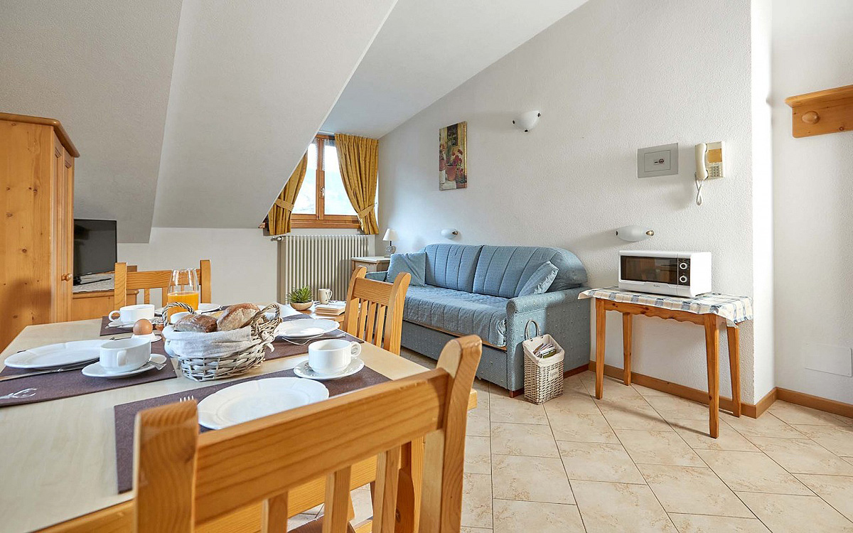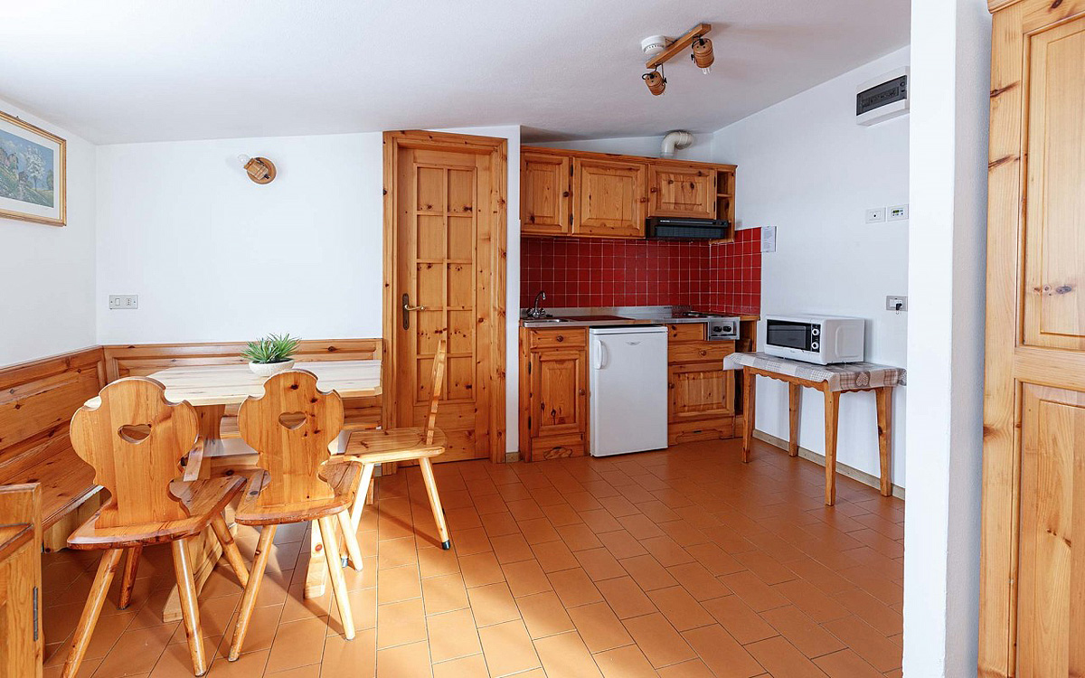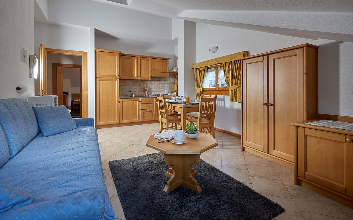 28 m² - obývací pokoj s kuchyňským koutem, manželskou postelí a rozkládacím gaučem typu "šuplík" či skříňovou palandou pro 2 děti do nedovršených 15 let, sociální zařízení; apartmán maximálně pro 3 dospělé osoby či 2 dospělé osoby a 2 děti do nedovršených 15 let