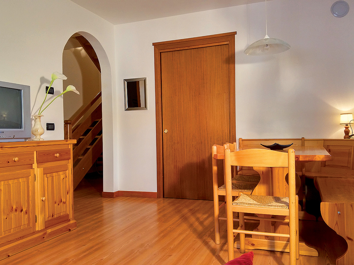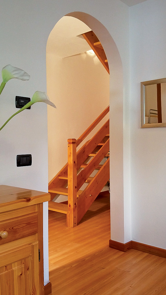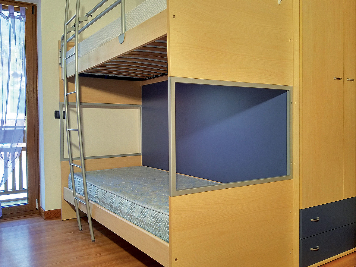 trilo 6 - 50 až 60 m² - 1. podlaží apartmánu: 1 ložnice s palandou, obývací pokoj s částečně odděleným kuchyňským koutem a rozkládacím gaučem pro 2 osoby; 2. podlaží apartmánu: 1 ložnice s manželskou postelí, komora, sociální zařízení, balkon