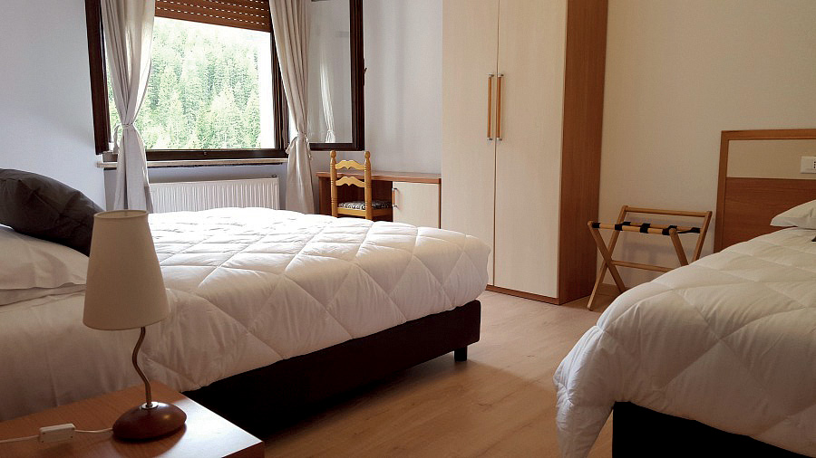 pokoj s manželskou postelí a palandou či 2 přistýlkami, sociální zařízení; pokoj jen pro 2 dospělé osoby a 2 děti do nedovršených 15 let
