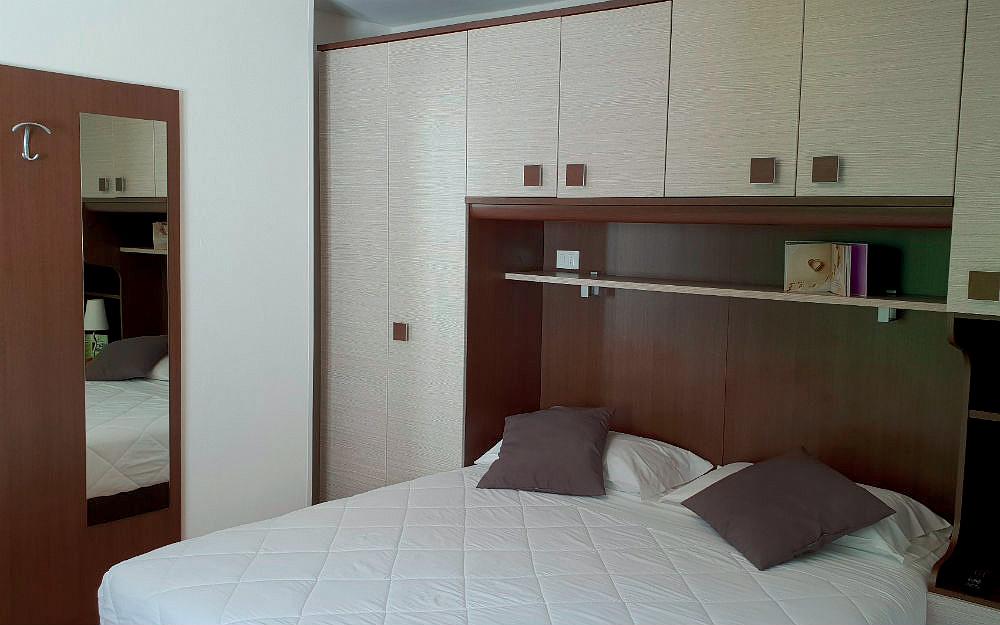 pokoj s manželskou postelí či 2 samostatnými lůžky a případně 1 či 2 dalšími samostatnými lůžky, sociální zařízení zpravidla se sprchou, zřídka balkon