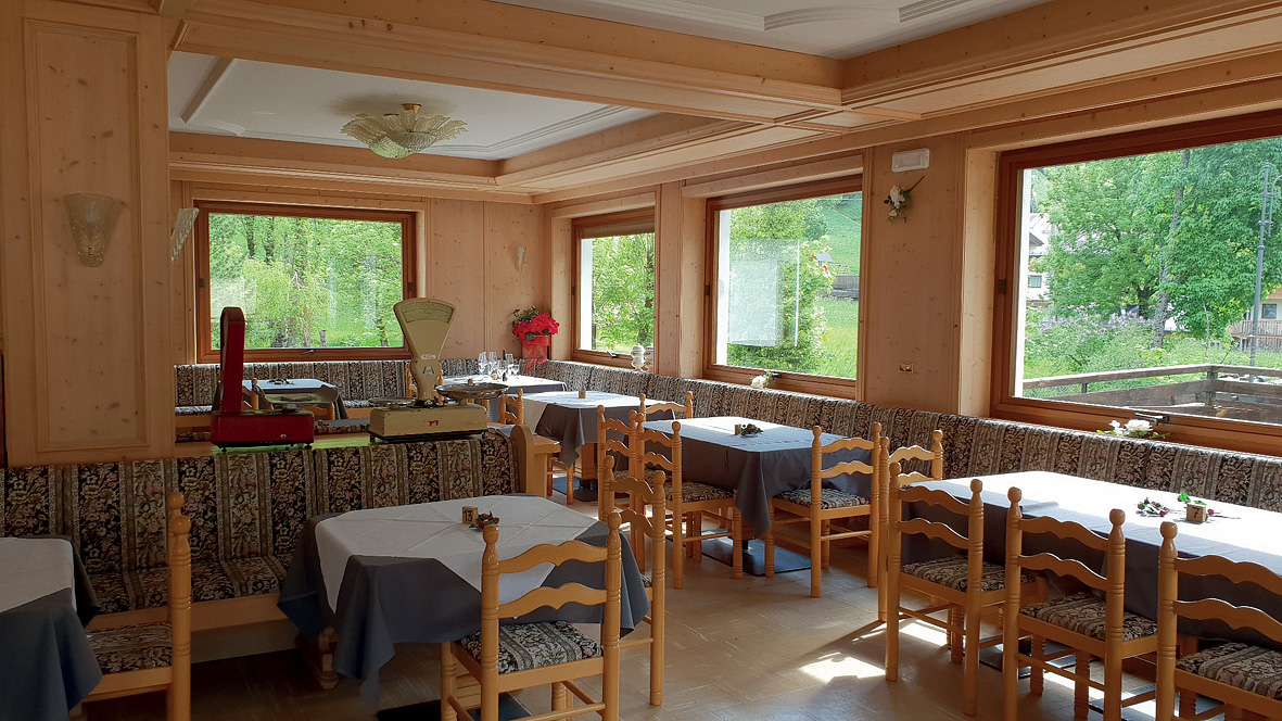 v hotelu Orso Grigio - servírované menu s výběrem ze 2 až 3 teplých předkrmů a 2 až 3 hlavních jídel s přílohou, studené předkrmy a saláty formou bufetu, servírovaný dezert, nápoje za poplatek
