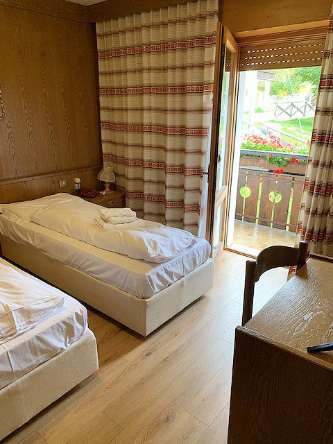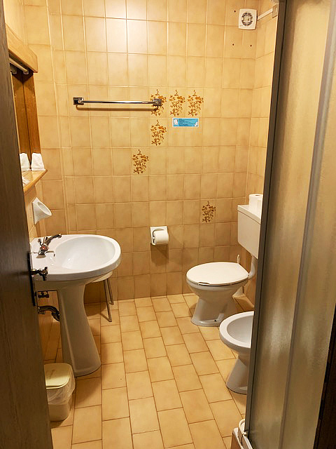 pokoj s manželskou postelí či 2 samostatnými lůžky a případně 1 dalším samostatným lůžkem, sociální zařízení zpravidla se sprchou, zpravidla balkon