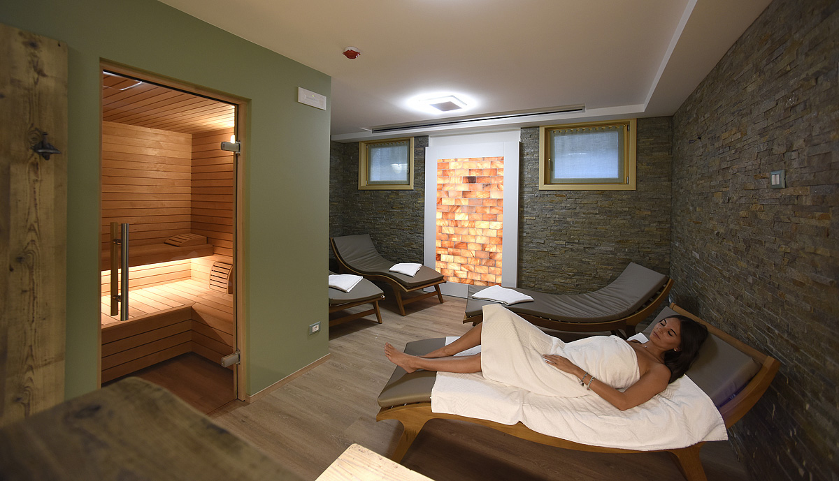 sauna#*, pára#*, 2x multifunkční sprcha#*, relaxační koutek#* s lehátky; služby označené # mohou využívat jen osoby od 18 let; wellness je pouze na vyžádání s minimálním počtem 4 osoby