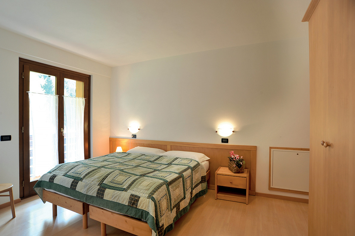 2 ložnice s manželskou postelí či 2 samostatnými lůžky a případně 1 dalším samostatným lůžkem, obývací pokoj s kuchyňským koutem a případně gaučem pro 1 či 2 osoby, sociální zařízení, balkon; některé apartmány jsou dvoupodlažní (obě ložnice v patře)