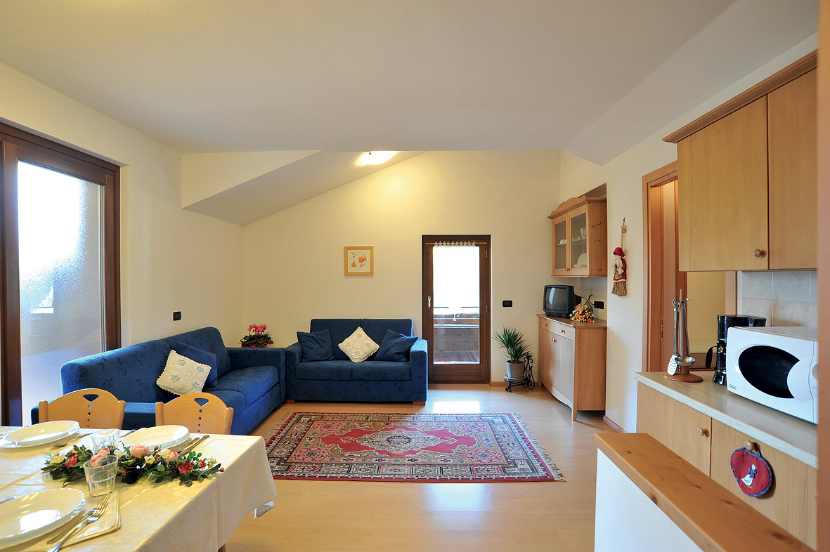 60 m² - 1. podlaží apartmánu: obývací pokoj s kuchyňským koutem a rozkládacím gaučem pro 1 osobu, sociální zařízení, balkon; 2. podlaží apartmánu / podkroví: 1 ložnice s manželskou postelí, 1 ložnice s manželskou postelí a 1 samostatným lůžkem