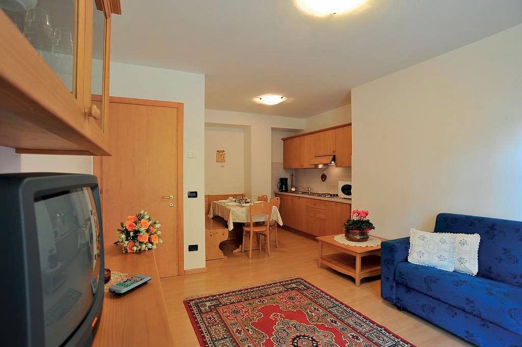 1 ložnice s manželskou postelí a případně 1 přistýlkou, obývací pokoj s kuchyňským koutem a rozkládacím gaučem pro 2 osoby, sociální zařízení, balkon