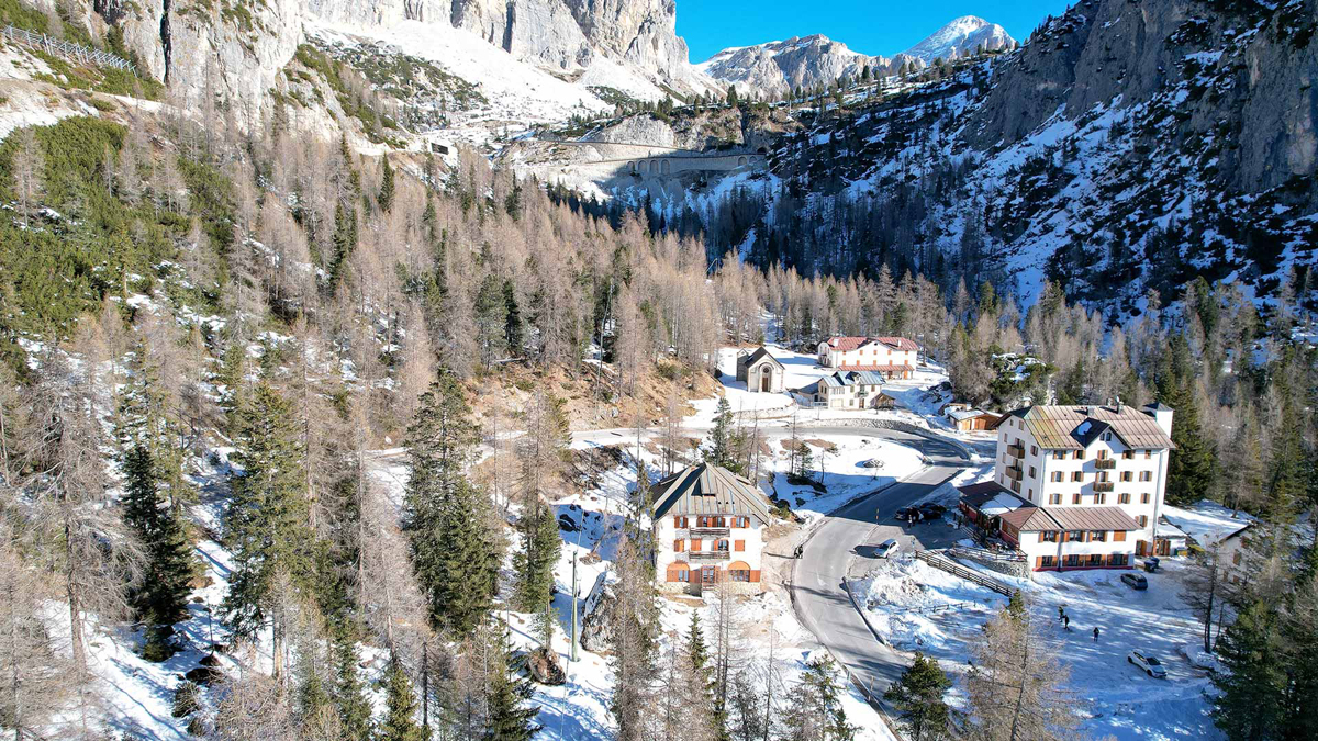 poloha na klidném místě takřka v srdci Dolomit nedaleko horského průsmyku Passo Falzarego s krásnými výhledy v nadmořské výšce 1.900 m.n.m.