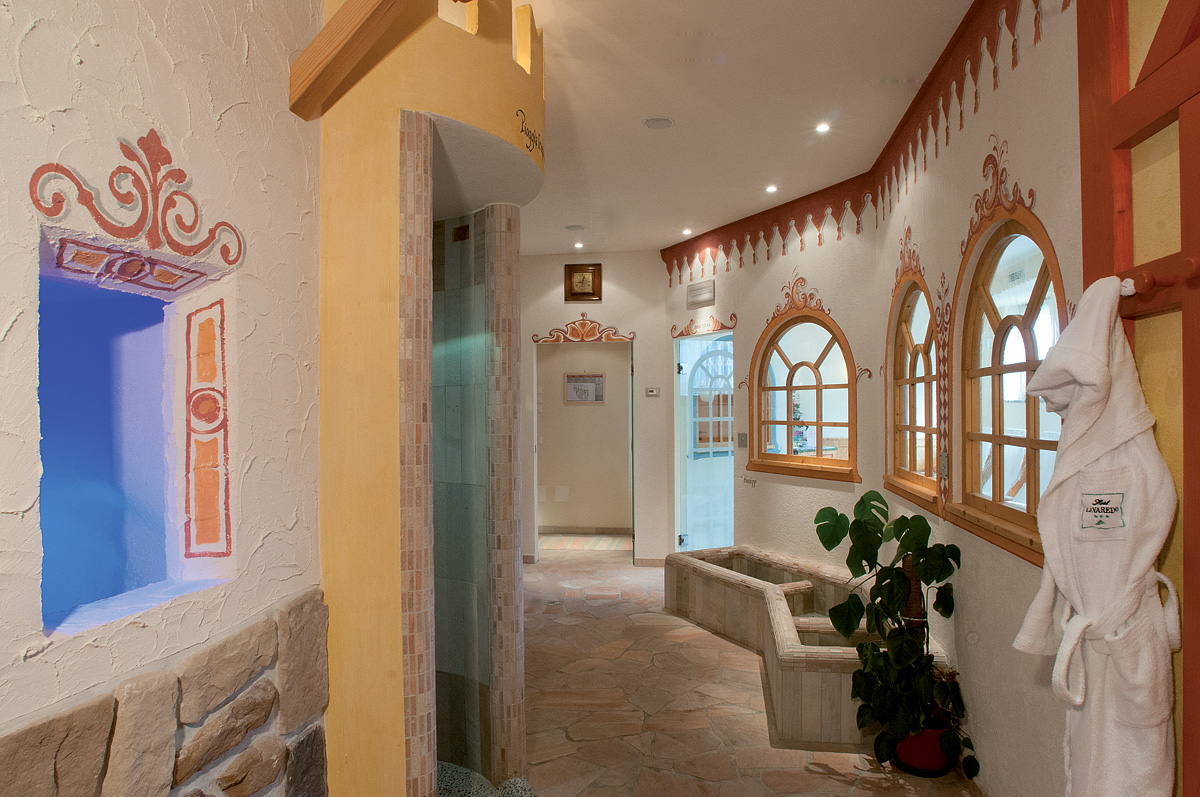 vířivka až pro 5 osob# , finská sauna# , pára# , multifunkční sprcha# , relaxační koutek s lehátky, Kneippův chodník, masáže*# (na vyžádání), stolní fotbal, stolní tenis; vstup do wellness pouze na vyžádání (min. počet osob 4), pouze v županu a v plavkách, služby označené symbolem # mohou používat osoby od 14 let