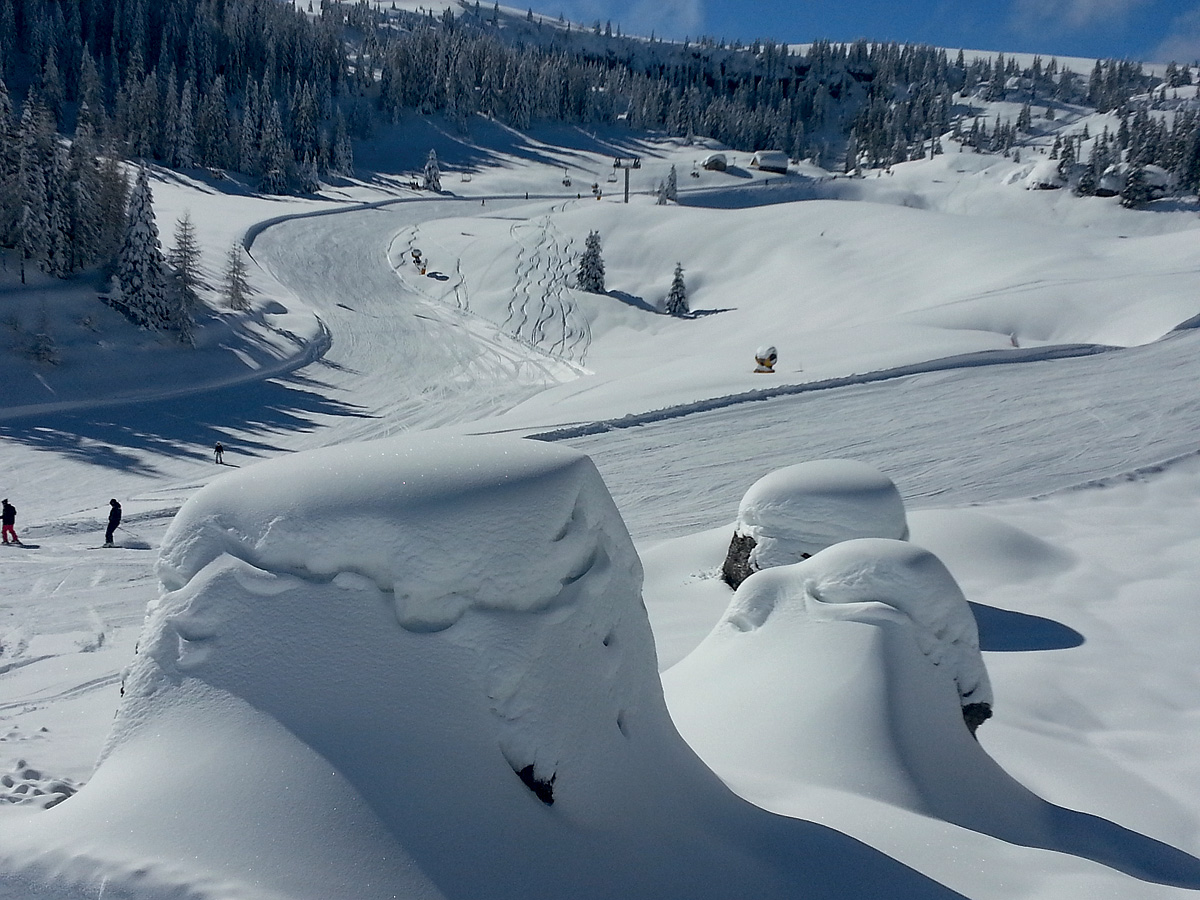 53 km sjezdovek bez nutnosti sundání lyží v rámci hlavního skiareálu